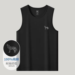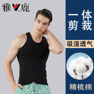 雅鹿男士棉純色背心夏緊身圓領(lǐng)透氣百分百打底工字背心運動無袖汗衫 黑色 XL30元起
