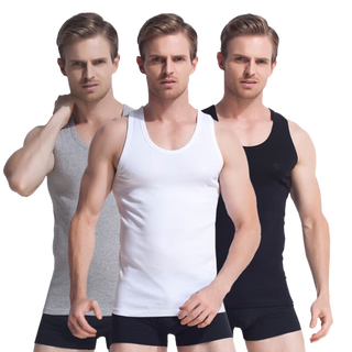 【100%純棉】3件裝高支純棉羅紋修身打底運動百搭背心男背心暫無報價 -