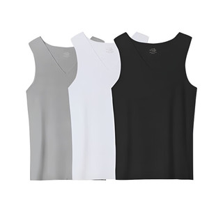 雅鹿3件裝背心男夏季冰絲薄款修身大碼運動健身打底無痕寬肩透氣汗衫 白+黑+灰 L59元起 -