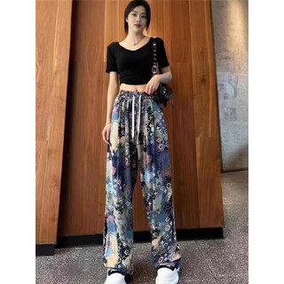 寶娜斯(BONAS)防曬度假風(fēng)闊腿褲女夏季薄款冰絲復(fù)古印花拖地高腰垂直筒褲沙灘褲 80-140斤暫無報(bào)價