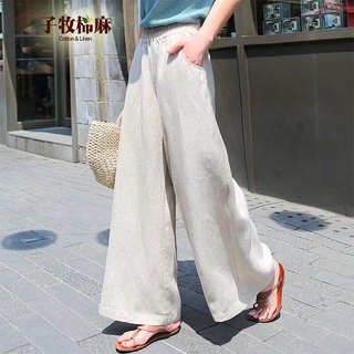 子牧棉麻春裝 女文藝闊腿褲休閑褲高腰垂感大腳褲子垂墜寬松長褲1119 (建議115-125斤)99元起 -