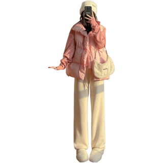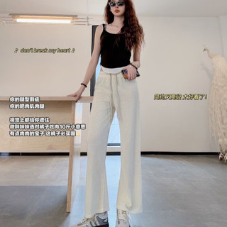浪莎軟糯米褲女高腰直筒休閑拖地褲寬松慵懶山本褲運(yùn)動褲子 燕麥色 2XL80元起 -