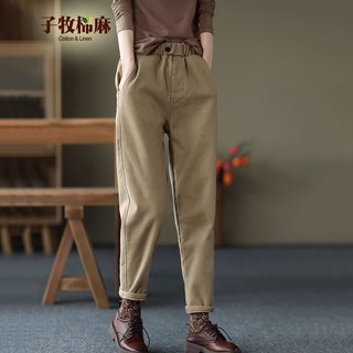 子牧棉麻2025秋冬裝 女加絨加厚褲子休閑褲松緊腰加絨哈倫褲時尚長褲8456 (建議95-115斤)59元起 -