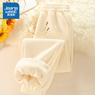 真維斯(JEANSWEST)華夫格加絨束腳褲女士運(yùn)動褲 米色 M90元起 -