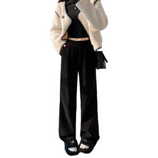 寶娜斯雪尼爾燈芯絨闊腿褲女外穿秋冬加絨高腰垂感直筒保暖休閑學(xué)生褲子 黑色(加絨款)【常規(guī)款】 M碼(適合101-110斤)59元起 -