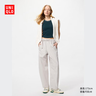 優(yōu)衣庫女裝休閑廓形長褲/系腰帶彎刀鐮刀褲子481028 481028/02淺灰色199元起 -