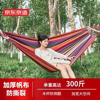 京東京造 戶外露營休閑加厚加寬帆布吊床 室內彎木防側翻 紅色雙人月牙吊床 雙人款60元起
