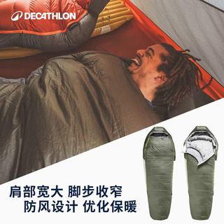 迪卡儂戶外木乃伊露營睡袋辦公室午休冬季成人保暖加厚便攜隔臟旅行 0°C軍綠色睡袋 M500元起