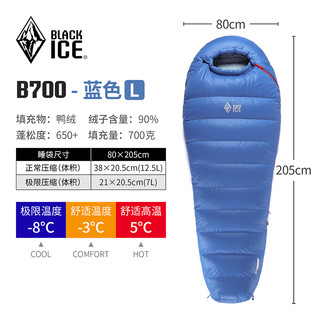 黑冰(BLACKICE) BLACKICE黑冰睡袋Z700/鵝絨睡袋戶外成人羽絨睡袋800蓬 藍拼灰Z-700克 L號【新標準】3074元起 -