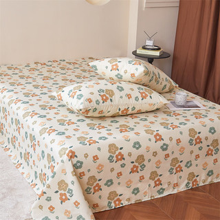 南極人純棉床單單件100棉斜紋印花被單150*200*230全棉床褥墊單四季可用 R床單砂糖橘【100%純棉面料】 1.2*2.3m單床單/適合0.9m床20元起 -