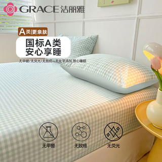 潔麗雅 GRACE100%純棉床單單件抗菌新疆棉A類全棉宿舍單人被單雙人床蓋 傾心小藍(lán)格【抗菌+A類母嬰級】 床單160*230cm【適用1.2m床】40元起 -