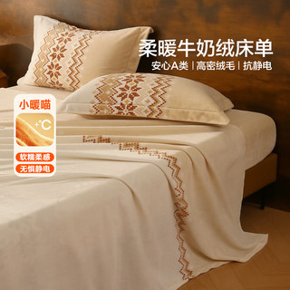 水星家紡床單單件 A類牛奶絨加厚抗靜電 秋冬暖絨床單宿舍印花床單 叢絨費爾島【A類牛奶絨】 160cm*230cm107元起 -