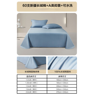 水星家紡床單單件 60支長絨棉抗菌床單長絨棉裸睡床上用品 長絨棉床單(灰藍(lán)色) 200cm×230cm133元起 -