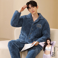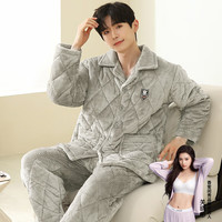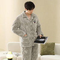 ?從心 夾棉睡衣男冬季三層加厚保暖珊瑚絨睡衣男法蘭絨家居服套裝 K1 6625 XL(高173-176重140-160斤)沖