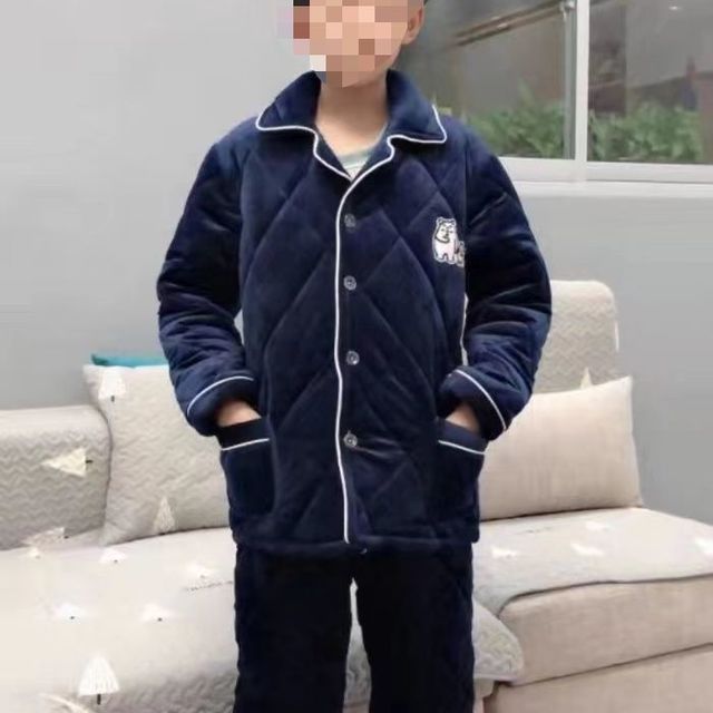 女童睡衣冬季加厚款兒童夾棉法蘭絨保暖套裝女孩珊瑚絨三層家居服