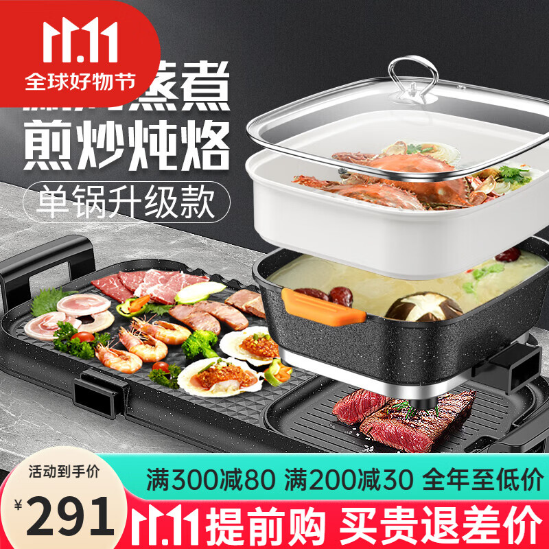 康佳(KONKA)電燒烤爐 烤肉鍋電烤盤家用火鍋烤肉鍋一體燒烤爐