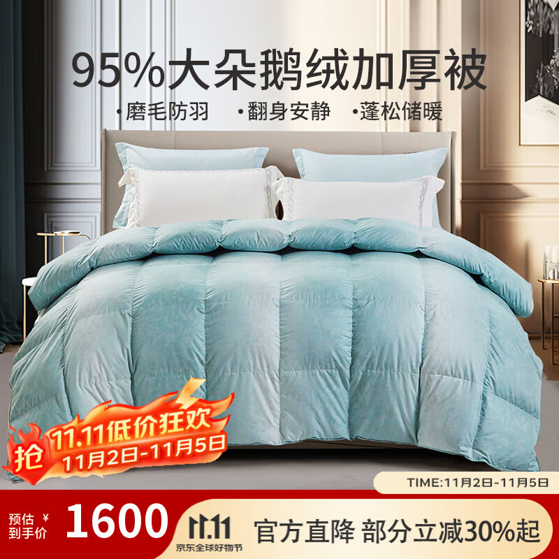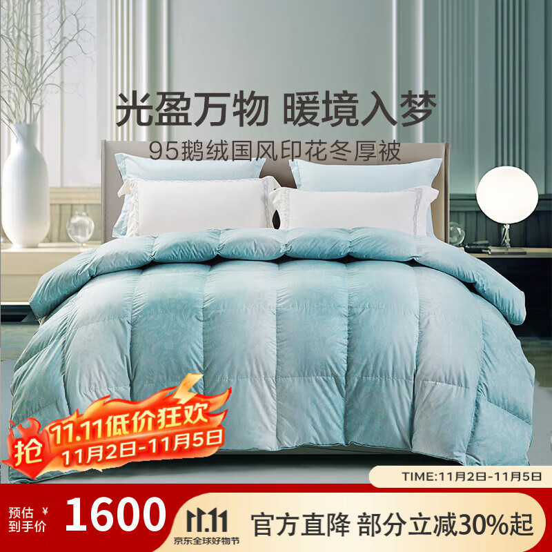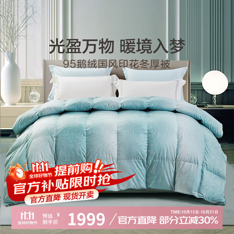 水星家紡白絨吹雪抗菌95%白鵝絨羽絨被冬被(1100g填充)220*240cm