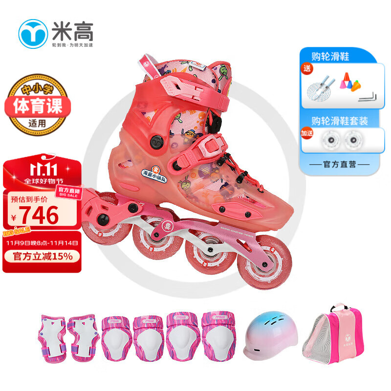 834.1元米高輪滑鞋兒童溜冰鞋旱冰鞋可調(diào)節(jié)初學(xué)休閑花式兩用中小學(xué)生培訓(xùn)鞋S7 白色K9套裝(K9盔 KP1護(hù) 包) S-7 L (推薦鞋碼37-40)京東 5k