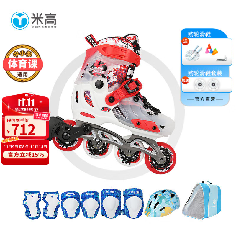 838元米高輪滑鞋兒童溜冰鞋旱冰鞋可調(diào)節(jié)初學(xué)休閑花式兩用中小學(xué)生培訓(xùn)鞋S7 白色K7套裝(K7盔 KP1護(hù) 包) S-7 M (推薦鞋碼33-36)京東 5k