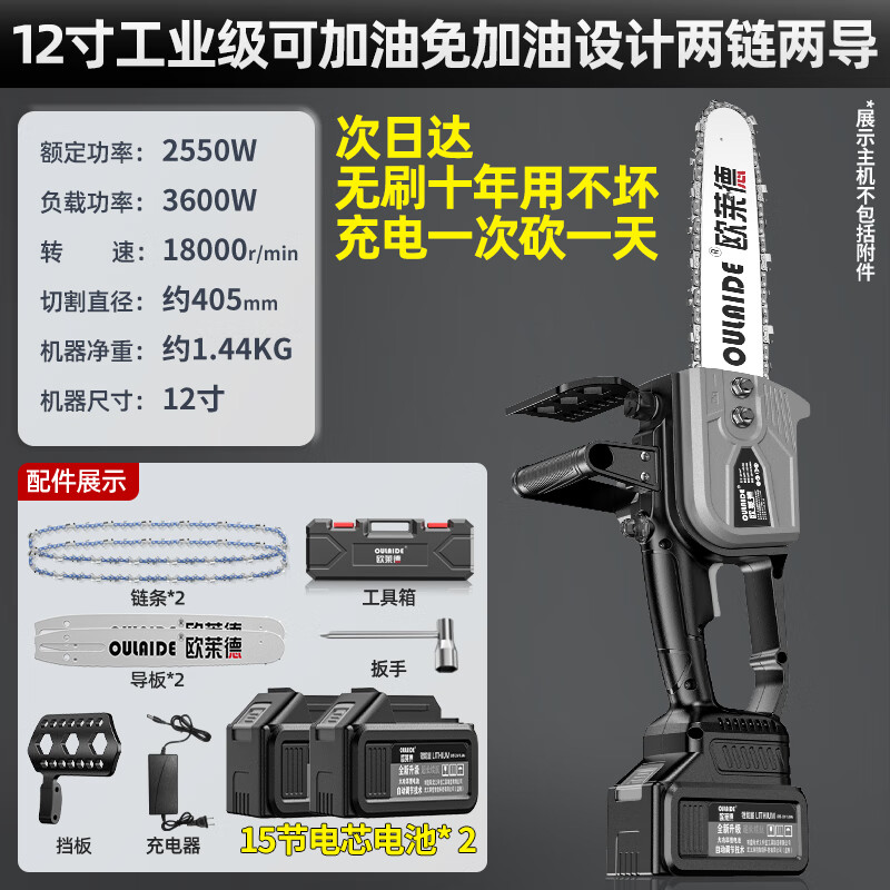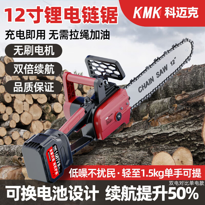 搏仕德 電鋸家用鋰電池鋸伐木手電鋸電動(dòng)手持大功率戶外電鏈鋸充電式小型砍樹修枝電動(dòng)工具 12寸無(wú)刷尊享款