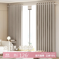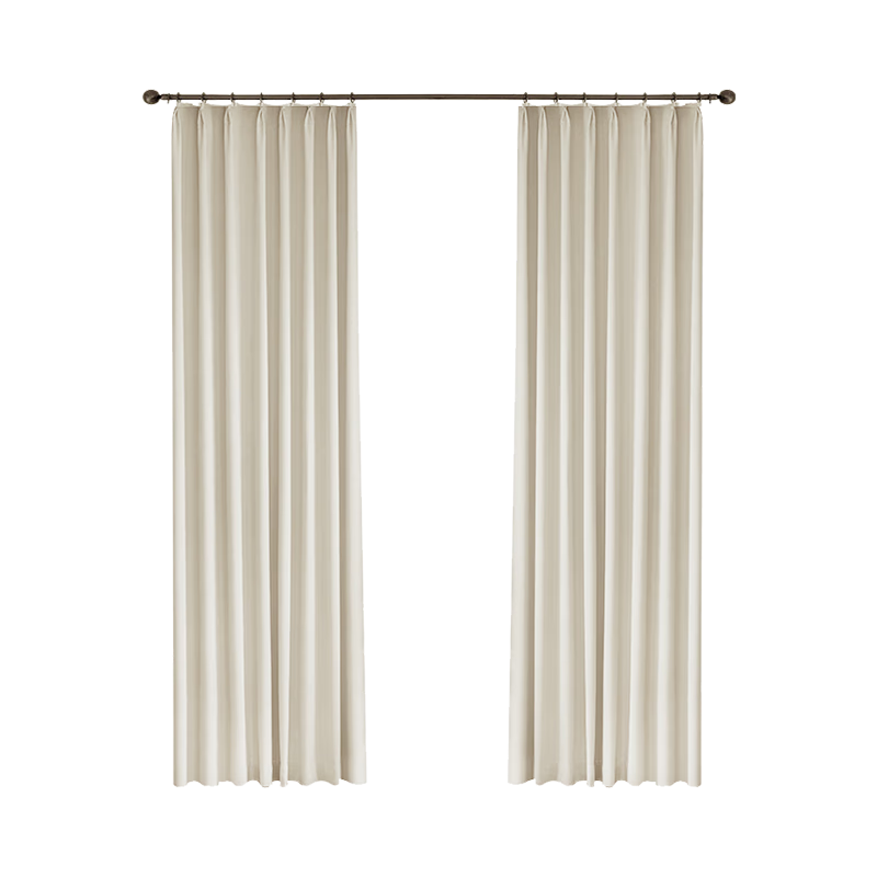 水星家紡窗簾遮光臥室全遮光布遮陽隔音飄窗奶油風(fēng)掛鉤式2片米色