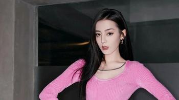迪麗熱巴粉色針織上衣+粉色短裙,完美勾勒她凹凸有致的身材