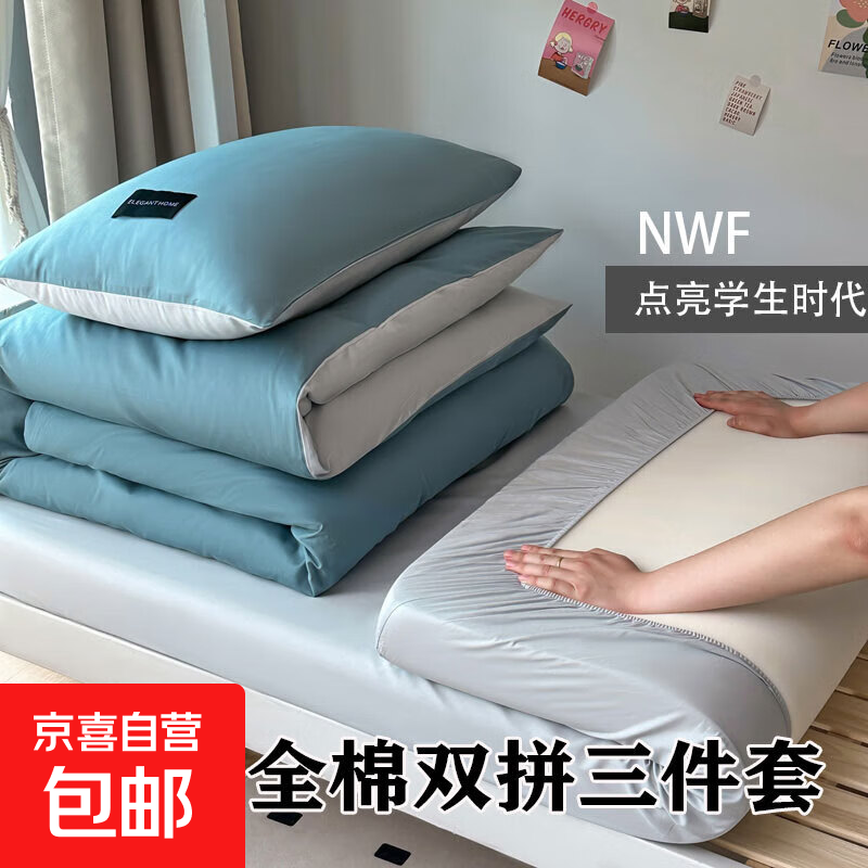 簡(jiǎn)約水洗冰絲四件套夏季涼感被套絲滑裸三件套學(xué)生床上床單床笠款