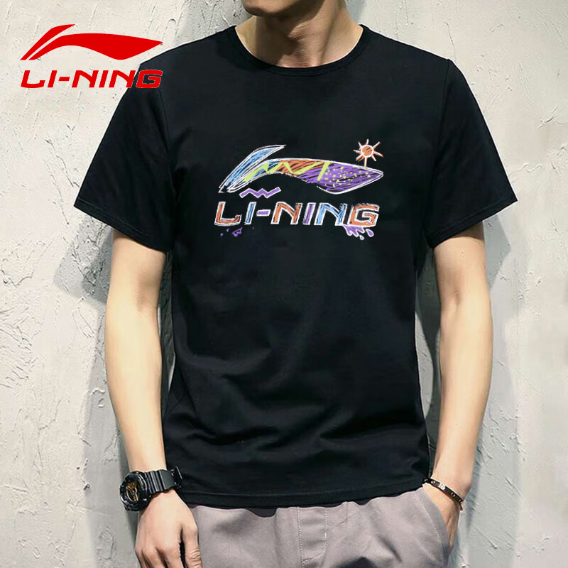 李寧短袖T恤男女同款運(yùn)動(dòng)時(shí)尚系列文化衫官方網(wǎng)AHSS565 黑色-3 XL