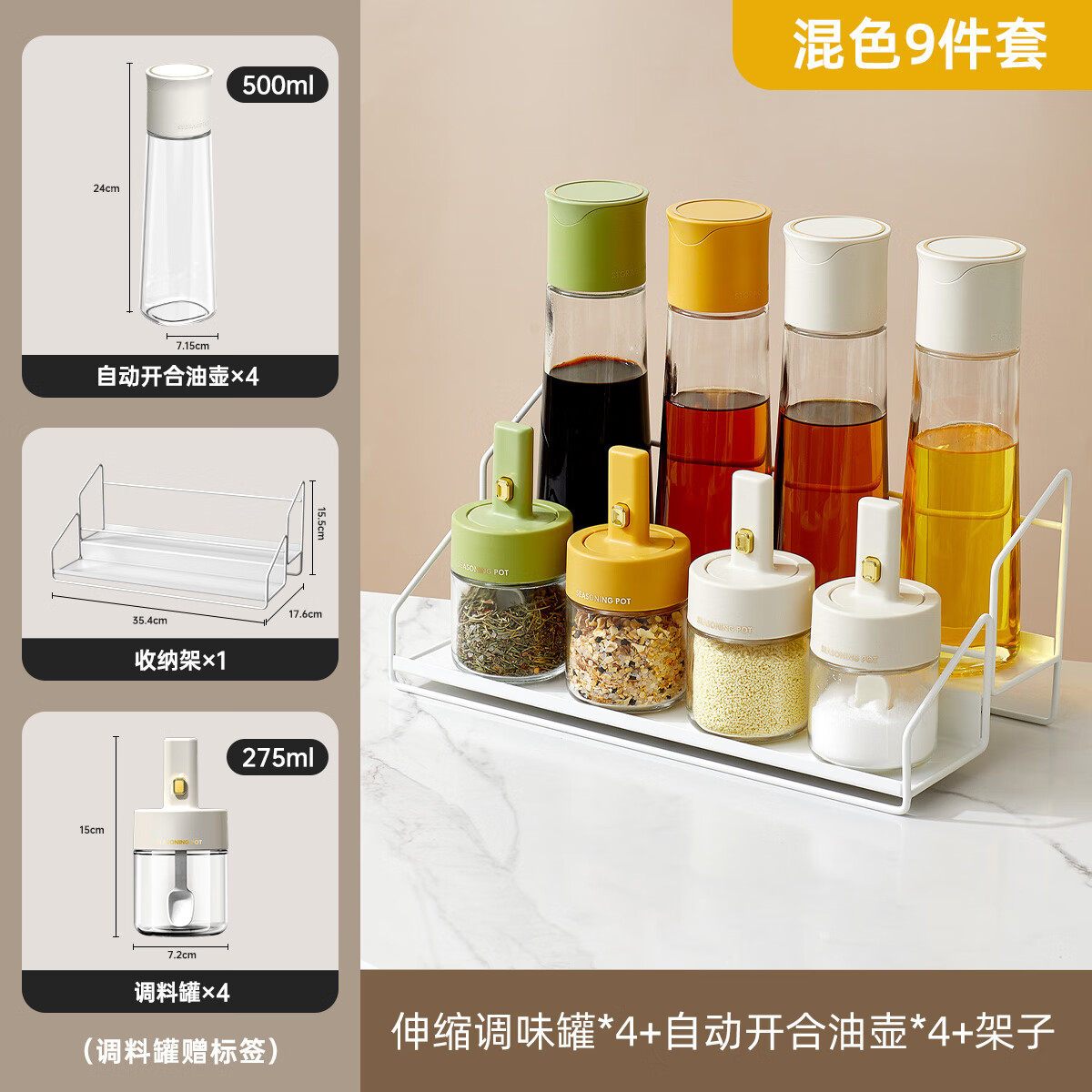 調(diào)料盒家用廚房置物架鹽味精佐料組合套裝調(diào)味料瓶罐子壁掛免打孔