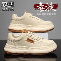 361度男鞋 秋冬網(wǎng)面老爹鞋 革面運(yùn)動(dòng)休閑鞋增高戶外鞋 舒適復(fù)古運(yùn)動(dòng)鞋 【秋冬革面】西米色/小麥褐