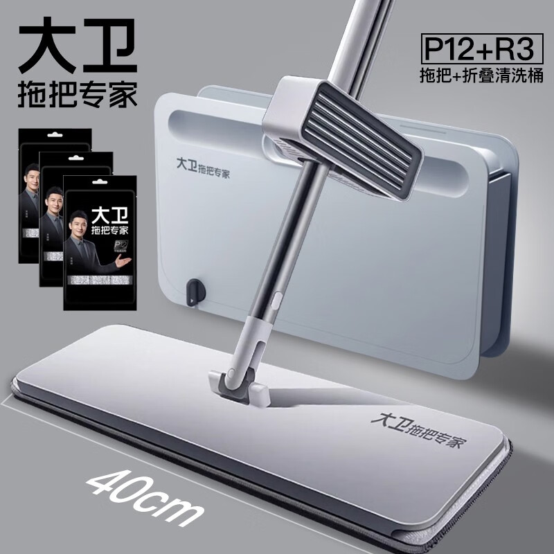 大衛(wèi)旋轉拖把D7,一鍵拆卸換頭,懶人必備的干濕兩用神器,1桿4頭太贊啦!
