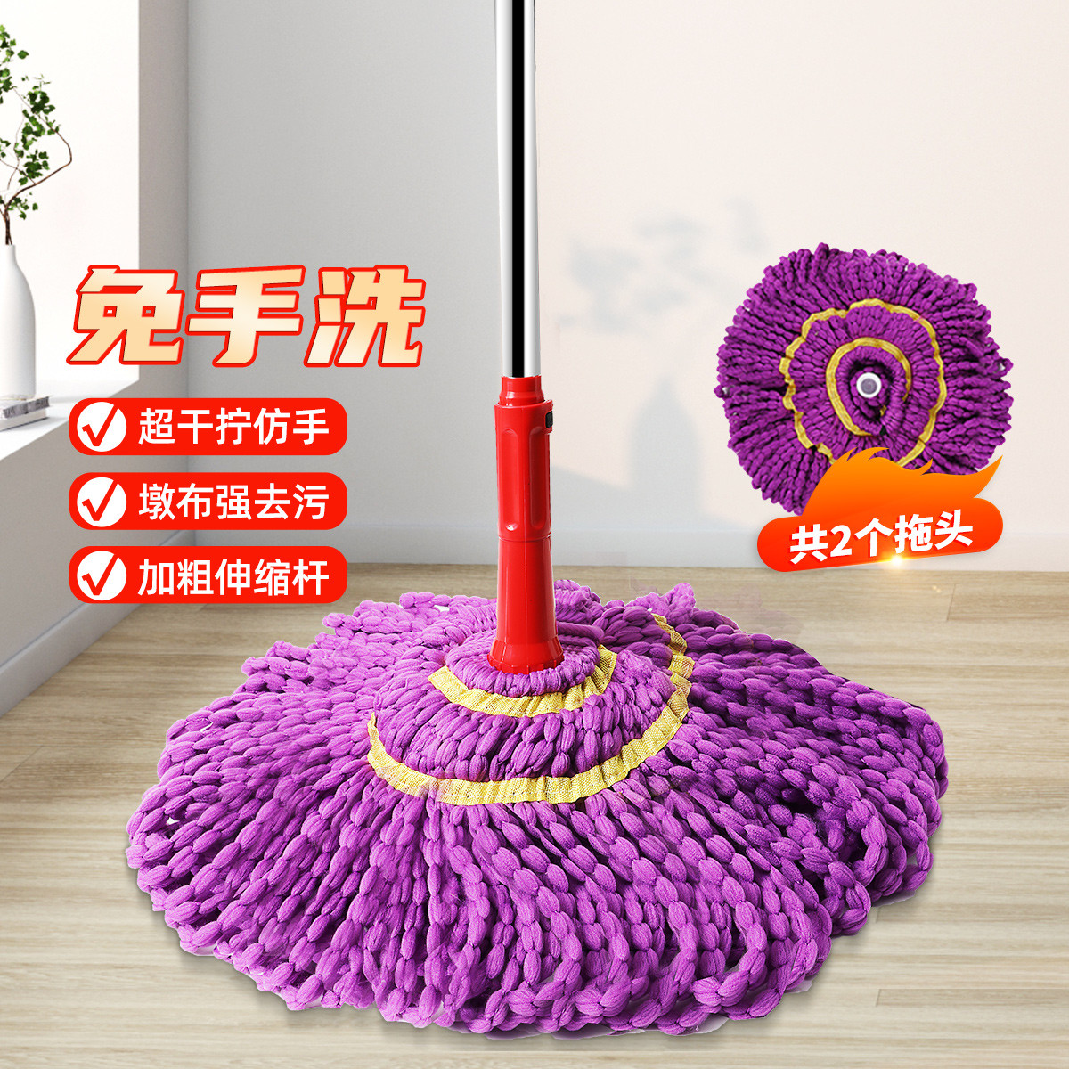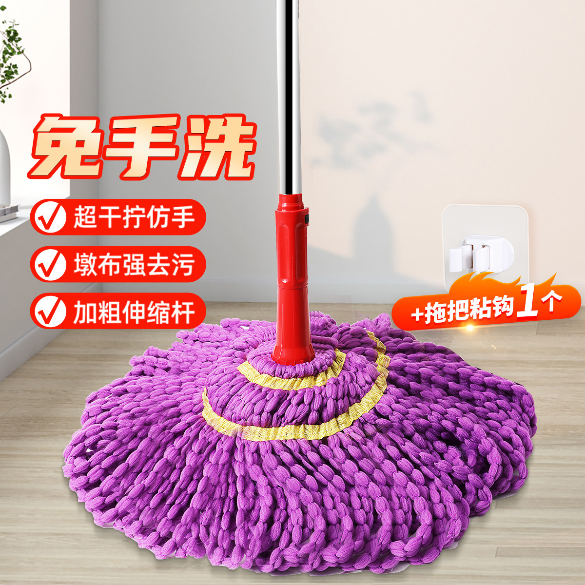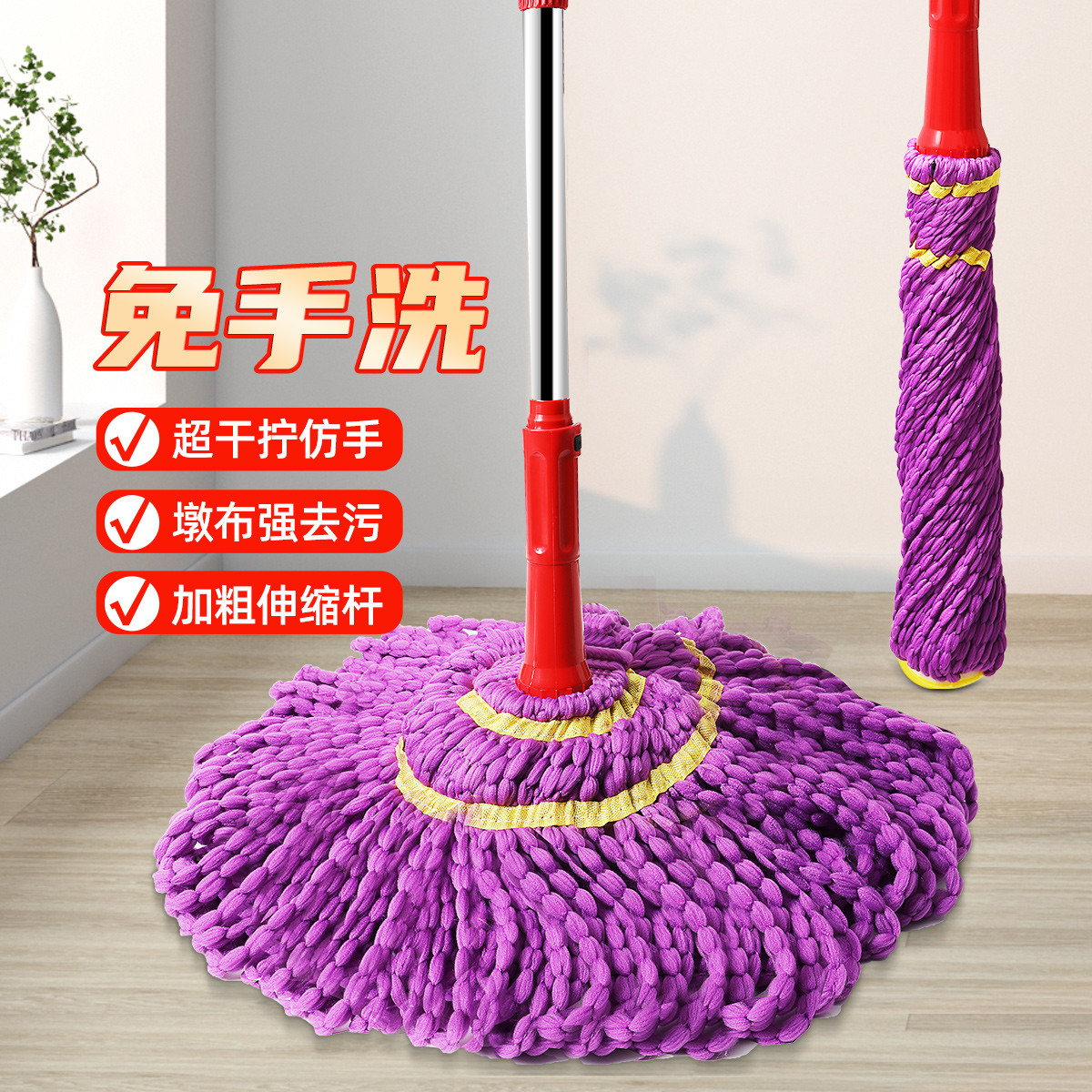 自擰水拖把省時(shí)省力,還不會(huì)臟手哦!