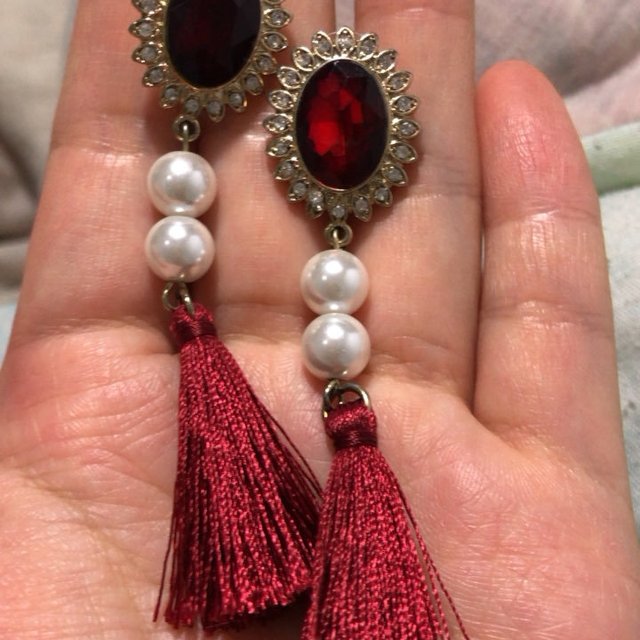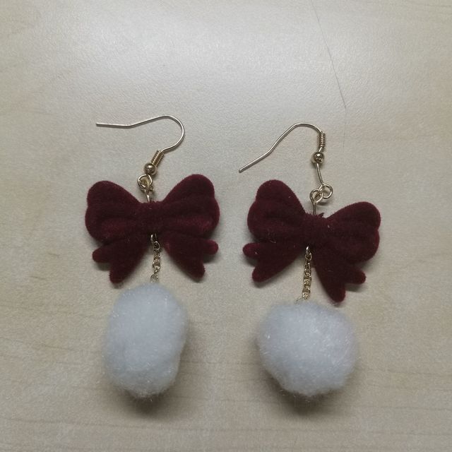 長款酒紅色蝴蝶結珍珠流蘇耳環(huán) 秋冬耳飾 喜慶紅色新娘耳墜日常