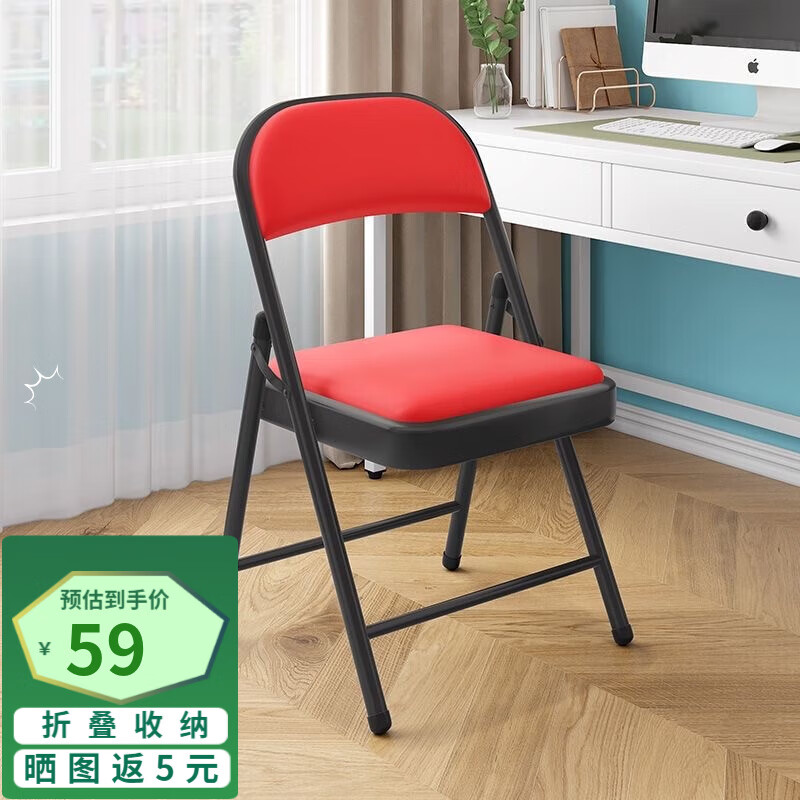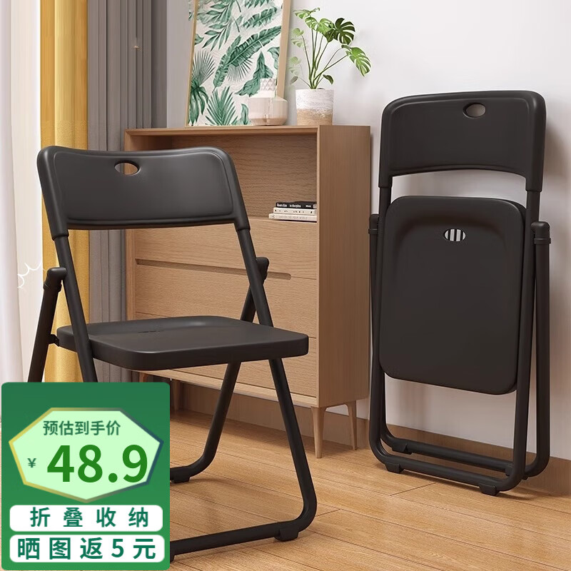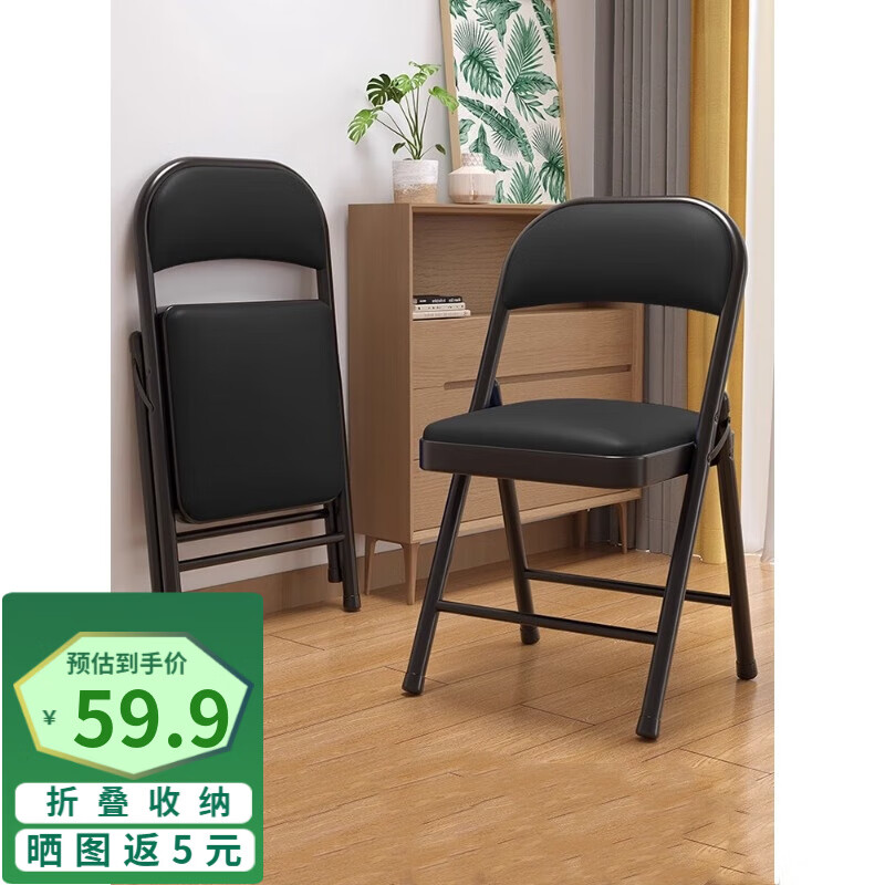全品屋 椅子折疊椅凳子電腦椅子靠背餐椅網(wǎng)椅學(xué)習(xí)椅簡(jiǎn)易休閑宿舍辦公家用會(huì)議培訓(xùn)座椅休閑椅 【PU福利款】黑架全品