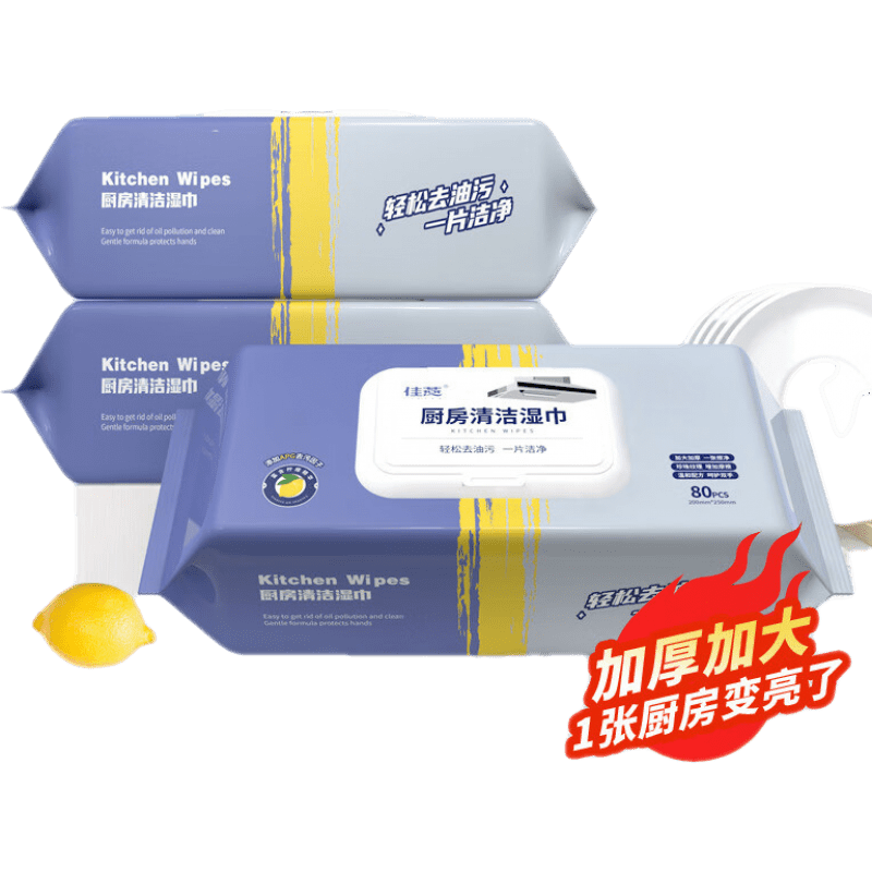 愛恩倍廚房濕巾80片*3包強(qiáng)力去油污清潔加大加厚 一次性抹布