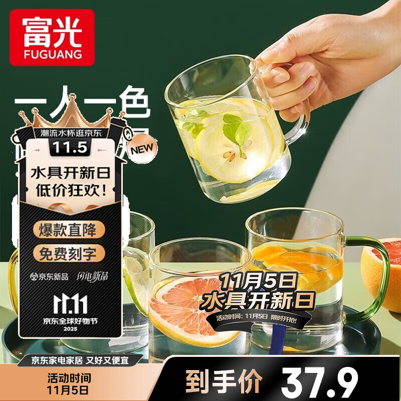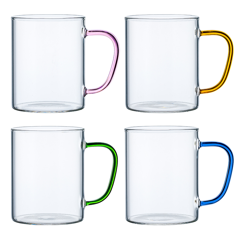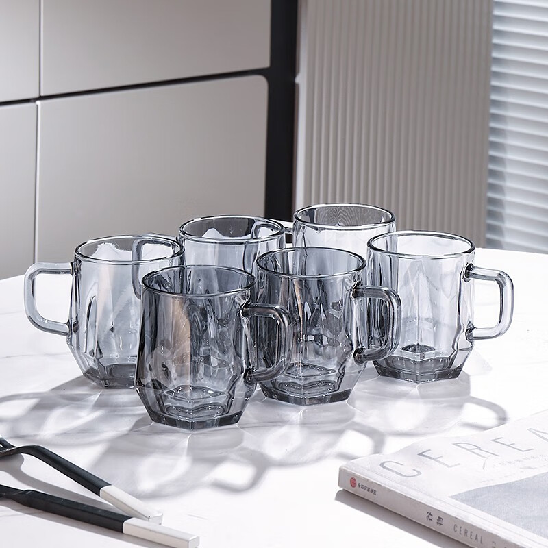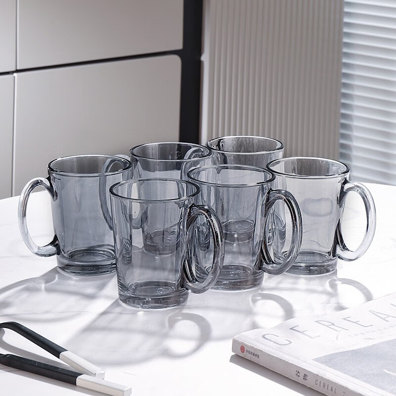 憶壺茶 玻璃杯水杯子耐熱茶杯加厚套裝家用泡茶杯牛奶果汁喝水杯六色杯 輕顏杯 300ML*6只裝