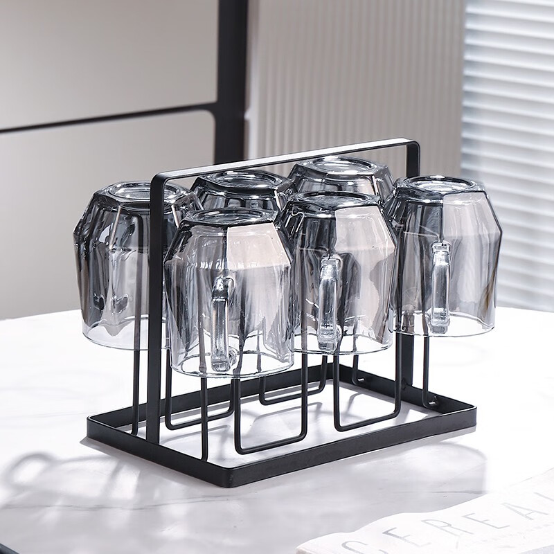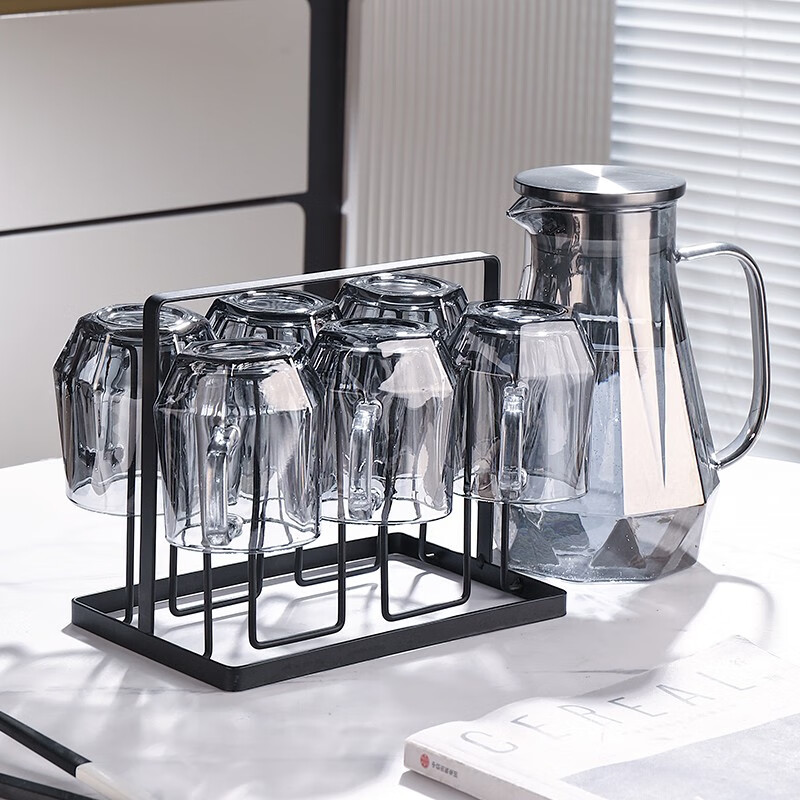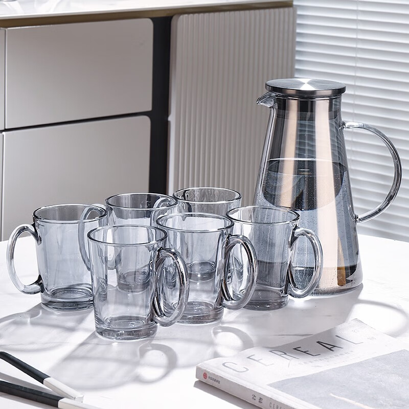 ?格娜斯 家用玻璃杯子茶杯水杯涼水壺套裝輕奢客廳喝水杯家庭待客水具杯具7件套 215ml水杯6個+1850ml水?格