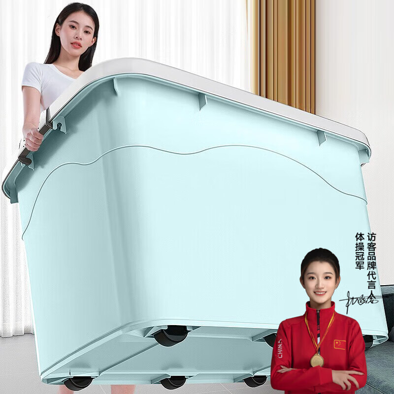 ?SPACEXPERT 塑料收納箱 100L藍色單只 衣物整理箱儲物箱搬家箱打包箱 帶輪沖沖沖沖呀京東自營店質(zhì)量保證