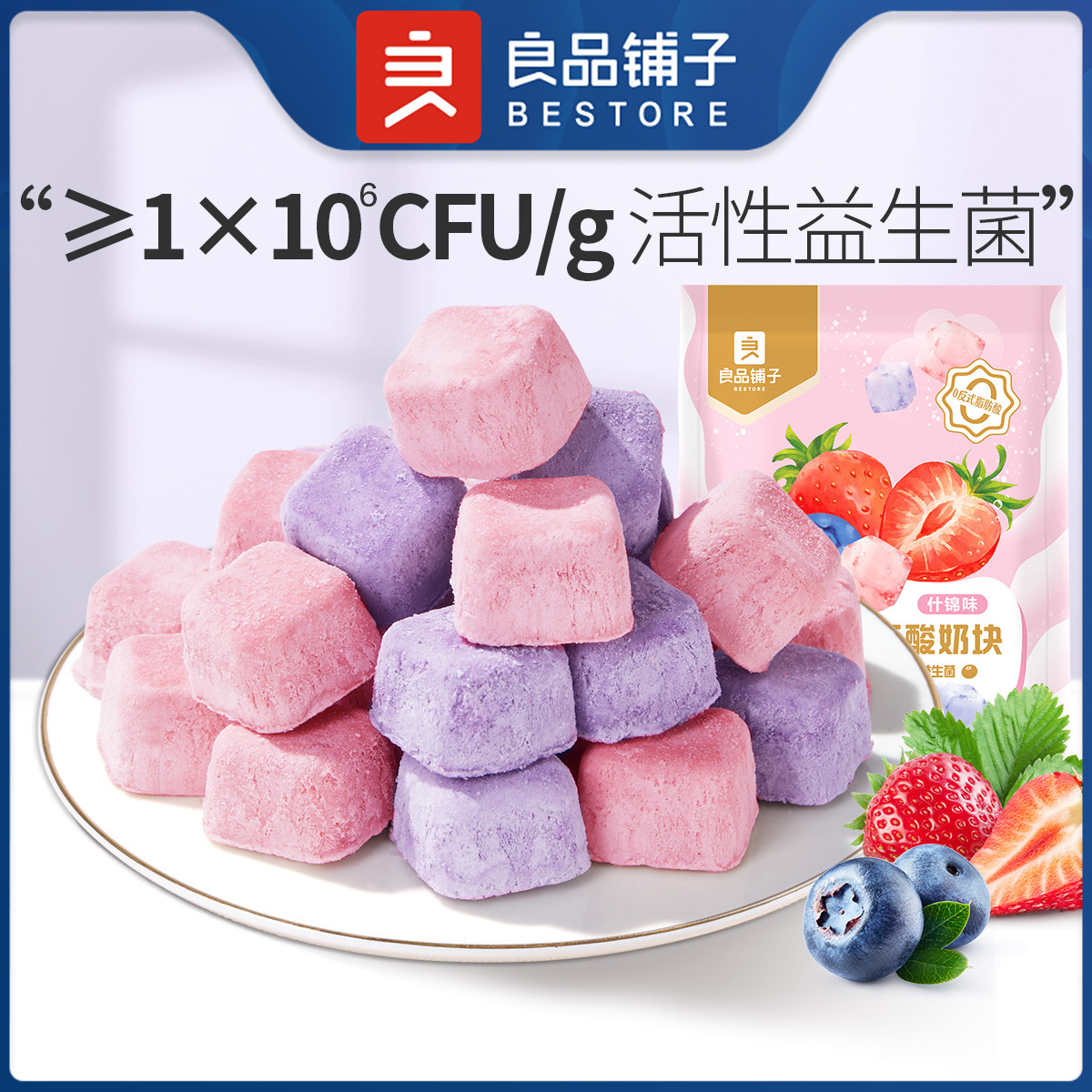 比比贊益生菌凍干酸奶塊藍(lán)莓凍干草莓水果干網(wǎng)紅零食小吃休閑食品