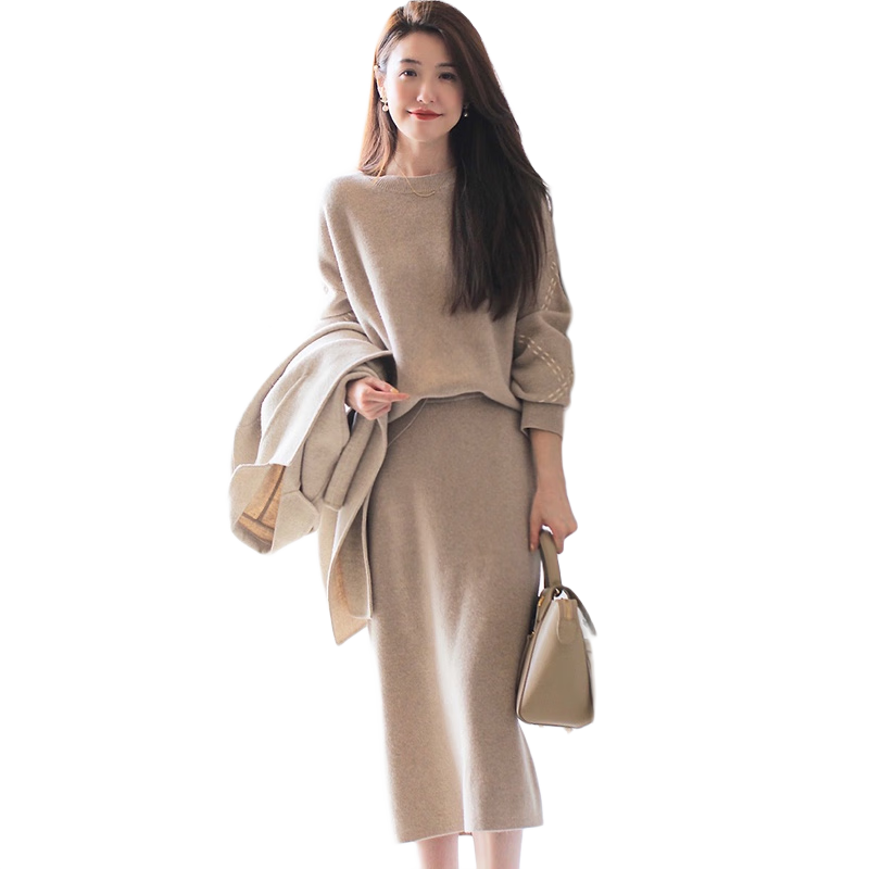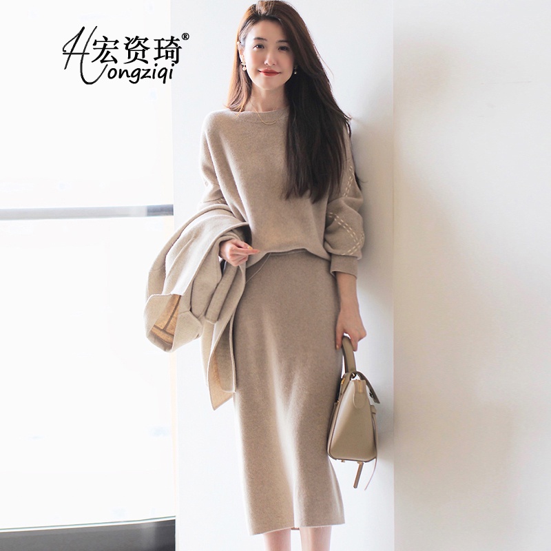 Amber Secret女裝2022年新款針織連衣裙女秋季外套顯瘦小香風(fēng)長(zhǎng)袖毛衣套裝裙子秋天衣服女潮 套裝766 MAmb