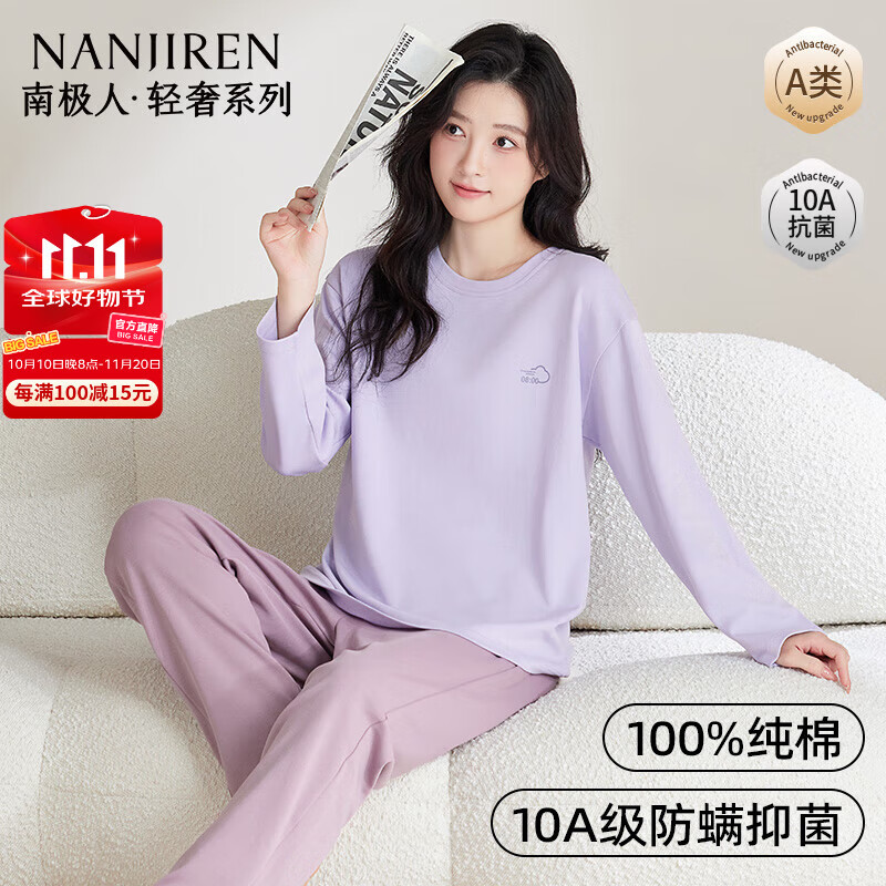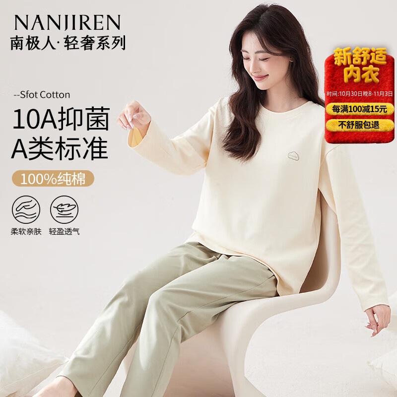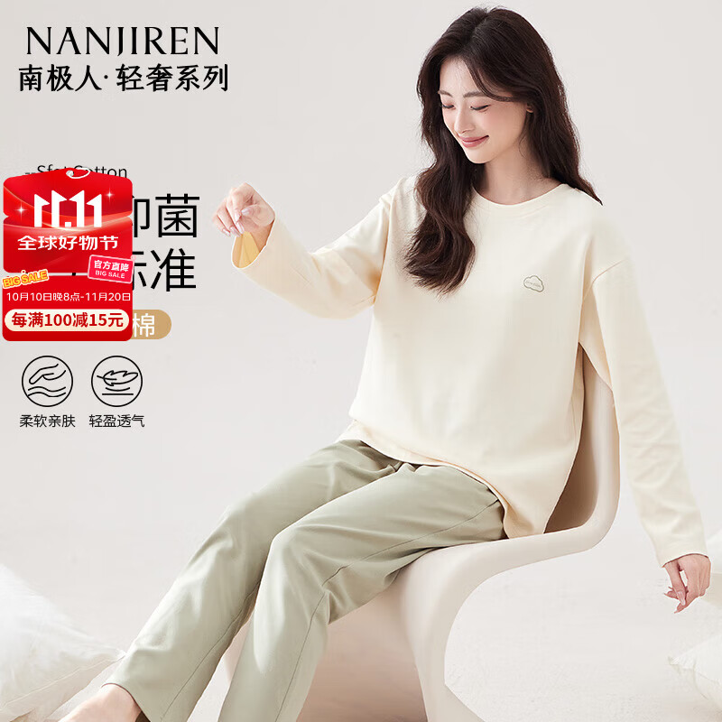 ?南極人林深見鹿男士睡衣男春夏季純色棉質(zhì)長袖圓領(lǐng)套頭可外穿家居服 XXL京東自營店質(zhì)量保證售后服務(wù)放心