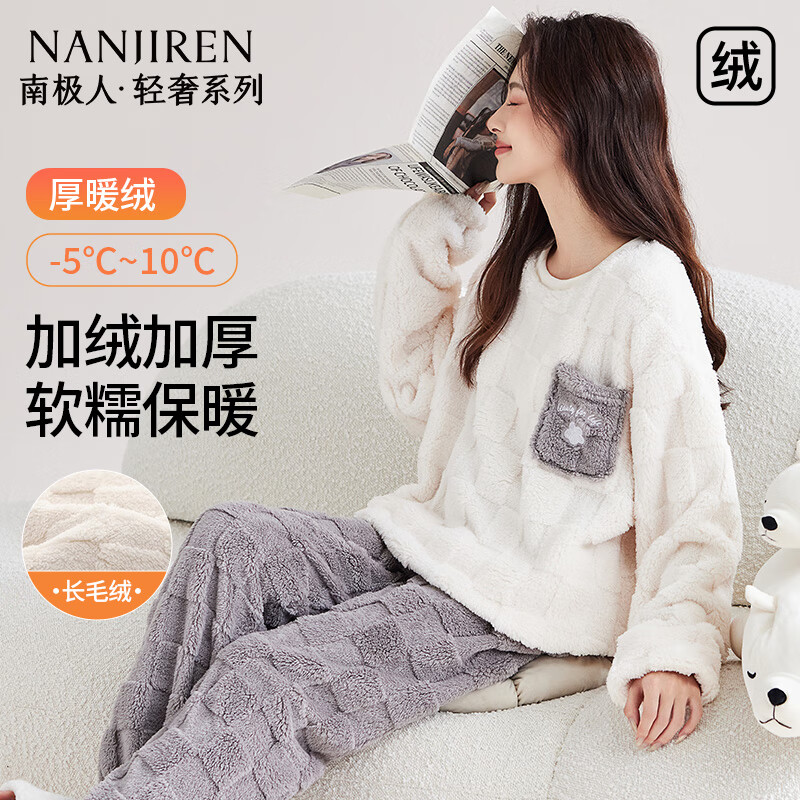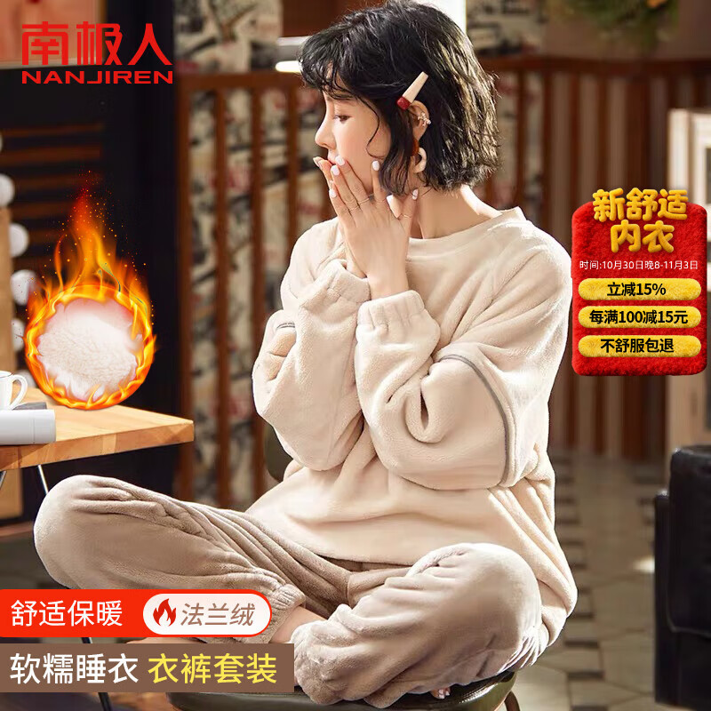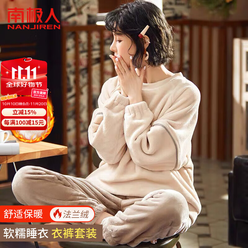 南極人(Nanjiren)暖咖愛心女士睡衣女秋冬季加絨加厚法蘭絨珊瑚絨可外穿家居服 XL京東自營店質(zhì)量保證售