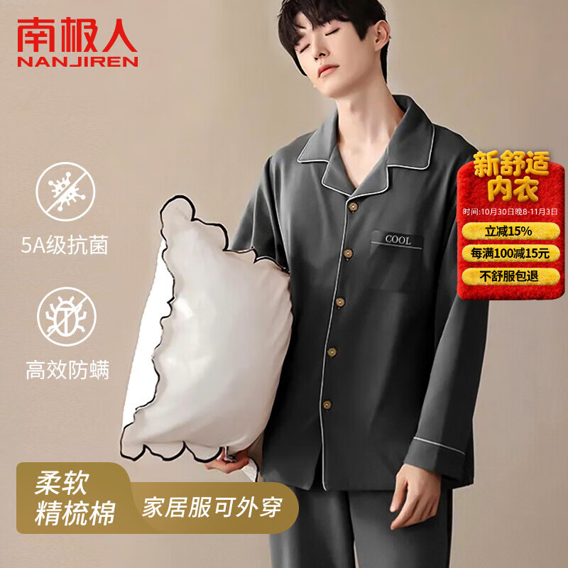 ?南極人男士睡衣男棉春夏開衫長袖長褲舒適可外穿家居服套裝高級灰XL京東自營店質(zhì)量保證售后服務(wù)放心好物