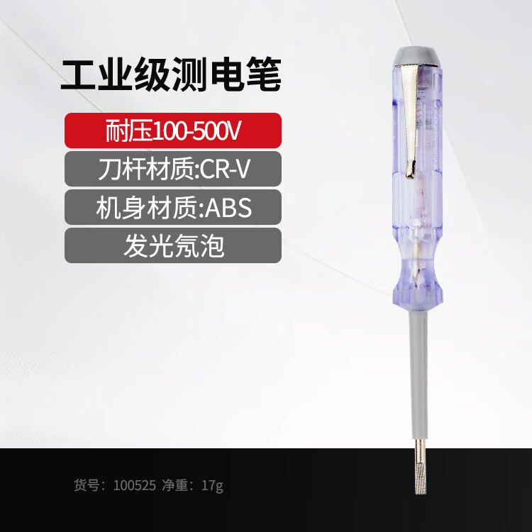 試電筆也叫測電筆,簡稱“電筆”。是一種電工工具,用來測試電線中是否帶電。筆體中有一氖泡,測試時如果氖泡發(fā)光,說明導(dǎo)線有電或為通路的火線。試電筆中筆尖、筆尾、為金屬材料制成,筆桿為絕緣材料制成。使用試電筆時,一定要用手觸及試電筆尾端的金屬部分,否則,因帶電體、試電筆、人體與大地沒有形成回路,試電筆中的氖泡不會發(fā)光,造成誤判,認為帶電體不帶電。