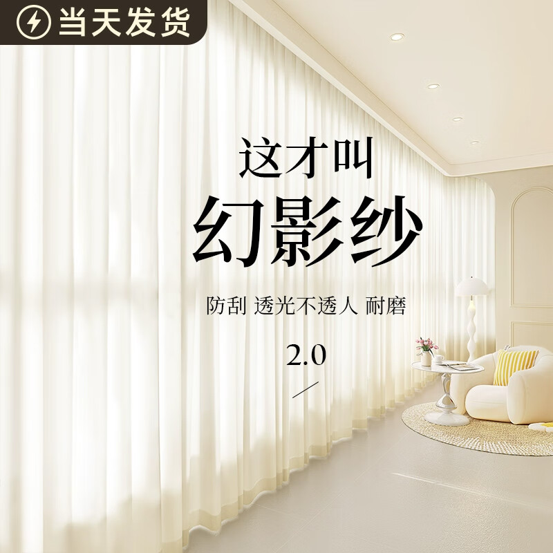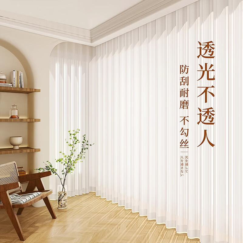 現(xiàn)代奶油風(fēng)紗網(wǎng)窗簾:輕薄透氣,淡白色超好看,遮光效果出眾
