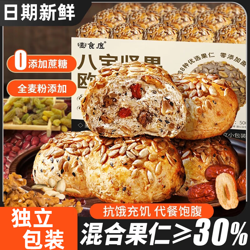 麥酥園 全麥面包堅(jiān)果粗雜糧面包早餐歐包代餐飽腹無(wú)糖精零食品2斤