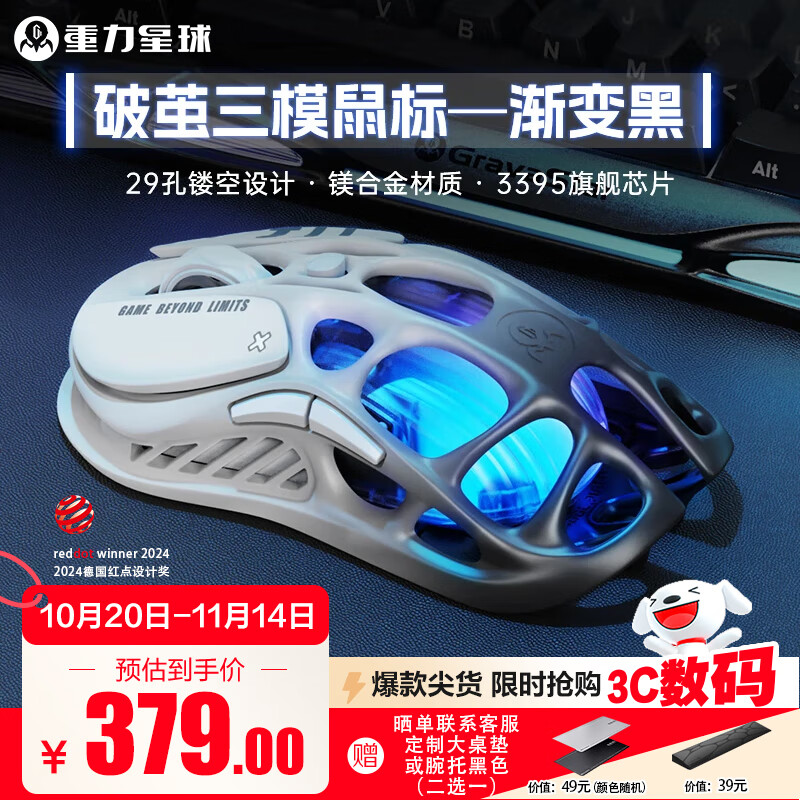 重力星球破繭 家用鼠標(biāo)無(wú)線(xiàn) 鎂合金29孔輕量化鏤空3395