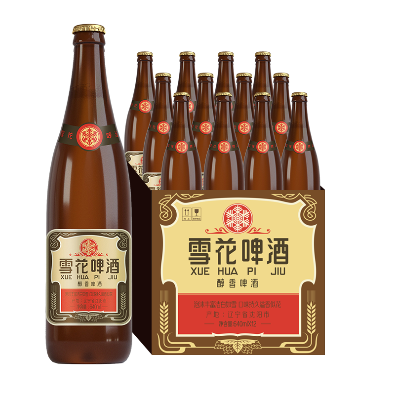 雪花啤酒 沈陽老雪 640ml*12瓶醇厚高度數(shù) 年貨節(jié)送禮