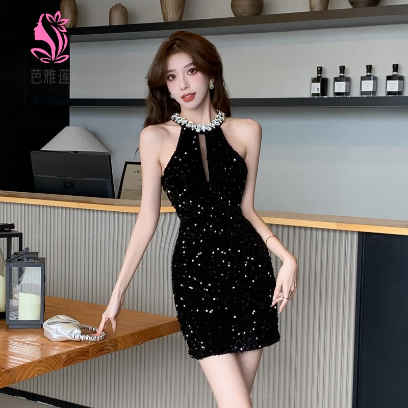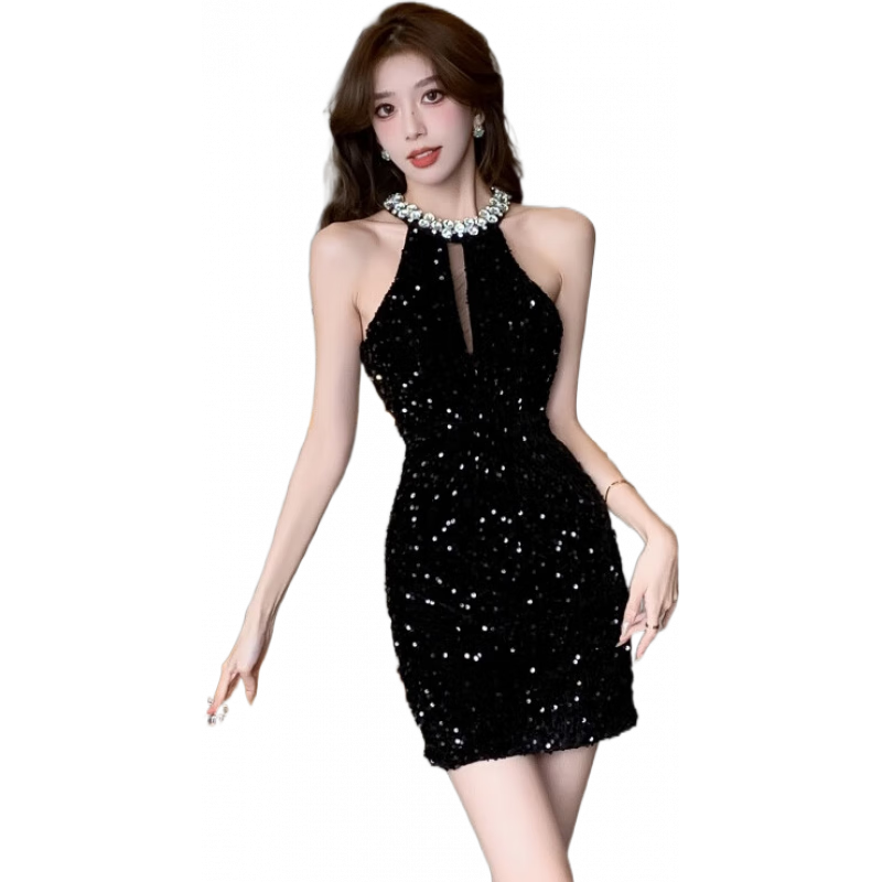 晚禮服裙女宴會氣質(zhì)訂婚輕奢小眾高端掛脖主持人高級感小個子禮服