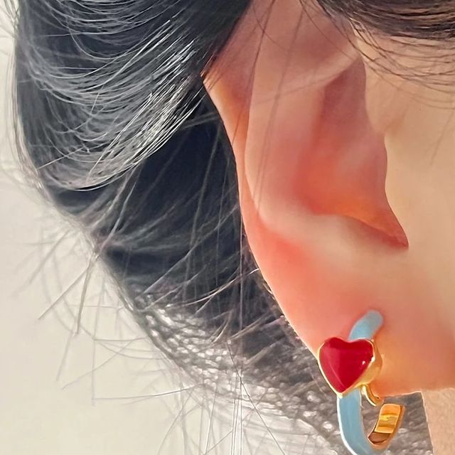 「莫奈之心」法式復(fù)古莫蘭迪藍撞色紅愛心精致高級感耳扣耳夾耳環(huán)